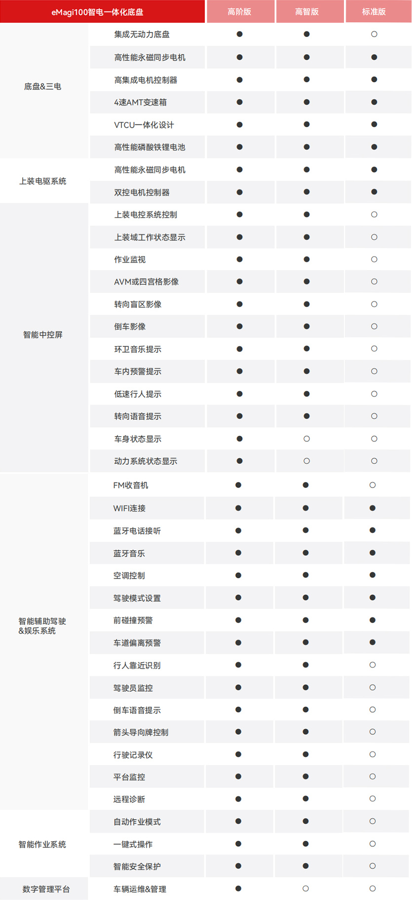 提供包含标准底盘和可选上装的完整方案包,包括控制模块、电机、电机控制器及其硬件和软件解决方案。这一整合式方案便于用户轻松完成电动化转型,无需担心兼容性和集成问题。
